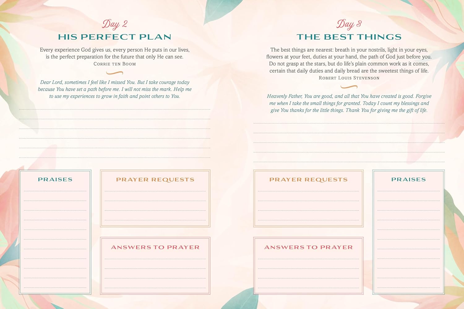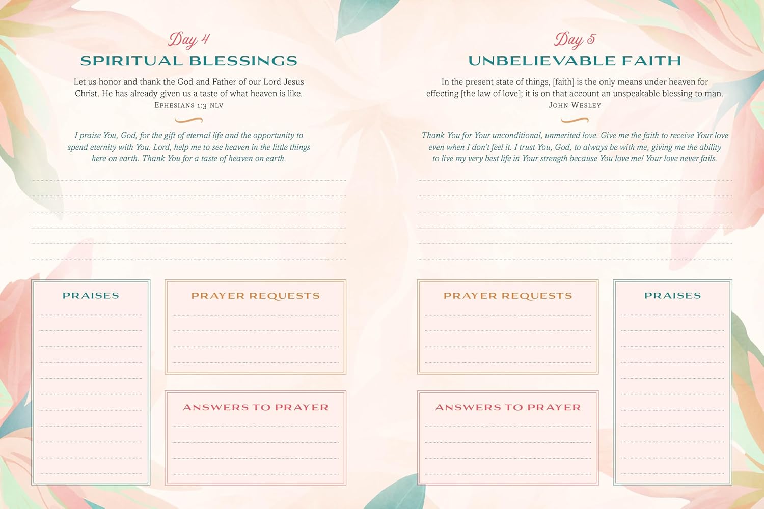 Here's a charming keepsake journal that provides you with encouragement, inspiration, and space to reflect. This unique prayer and praise tracker features scripture, faith-building quotes, and encouraging prayers alongside dedicated space to journal your prayer requests, answers to prayers, and praise of God's goodness every day. At the end of the year, you'll see just how your Father God worked in your life—in beautiful and sometimes unexpected ways!